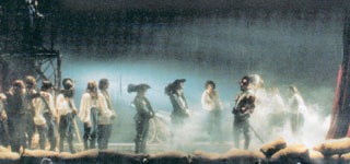 SLM: Sì, è del regista, condivisa da me e quasi contenuta nel testo, perché la prima scena del Cyrano de Bergerac si svolge in un teatro. Quindi, abbiamo già ricostruito in palcoscenico un altro palcoscenico, e siamo al teatro nel teatro, anche in questo testo. Patroni Griffi ha un passato di teatro nel teatro, avendo messo in scena proprio qui a Trieste la trilogia pirandelliana, lei era forse troppo ragazzo, perché era dieci-quindici anni fa…