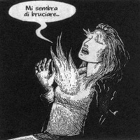 Al di là delle diverse tinte assunte dai racconti a livello grafico — talvolta con toni più leggeri, talvolta più foschi, altrove (in “Châiné”, ad esempio) più enfatici — stupisce la caratterizzazione dei personaggi, che, a mio avviso, nonostante le smentite della stessa autrice (v. l’intervista su Fucine Mute n.14), risultano ben individuati tanto nei tratti somatici, tanto in una gestualità che ne restituisce