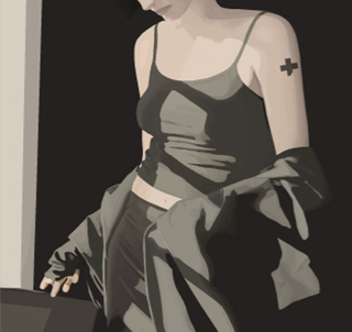La mia amica (la modella dei ritratti) ha fatto il cappotto. Abbiamo anche comprato due parrucche (una rossa e una nera) per le foto. Mi è servito un po’ di tempo per realizzarli, perché ho creato le mie illustrazioni attraverso dei tracciati disegnati a mano in Photoshop, che successivamente ho esportato in Freehand (perché non puoi importare direttamente il file .ai) e importato in Flash, dove li ho colorati. È stato un lavoro piuttosto divertente.
