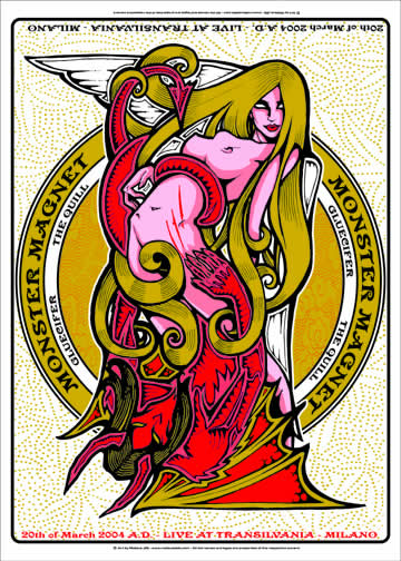 MALLEUS is working on hand silkscreened posters since the beginning of 2003 and in 6 months we've worked for artists like Flaming Lips, Turbonegro, Melissa Auf der Maur, Fishbone, Spiritual Beggars, Bronx, Sophia, Oneida, 90 day men, Sigur Ros, Linea 77, Monster Magnet, etc.