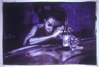 La penna blu è il primo mezzo con il quale Fabre fa il suo ingresso nel settore della pittura. “Ho disegnato molto con la biro perché costava poco, così, adoperandola continuamente, ho scoperto le qualità chimiche del suo inchiostro. Ma cos’è il disegno, mi domando? Ebbene può essere qualcosa di estremamente privato, uno schizzo per un’installazione ma può anche divenire un medium indispensabile per uscire dall’intimità facendosi lui stesso scultura, con un fronte e con un retro, attorno alla quale si può girare. In molti quadri il contenuto si sviluppa esattamente dalla tinta e dal materiale”. Da ciò deriva che questo colore, che evoca il momento più importante della giornata (l’Ora Blu), oltre ad essere utilizzato nelle performance, viene studiato in tutte le sue possibilità di reagire alla luce e a supporti diversi come carta, legno, seta artificiale, ferro e vetro. Esposti in importanti gallerie internazionali ed ammirati proprio in virtù della loro forza cromatica, secondo Jan Hoet, direttore del museo di Gand e primo estimatore dell’opera pittorica di Fabre, i suoi disegni possono essere raggruppati in quattro categorie principali: il dipinto come illustrazione, come impressione di realtà, come gesto e come strumento. Il primo gruppo è composto dalle tele in cui è protagonista l’idea, il soggetto. In Sleep, sleep and sleep, little animals (1975) o negli autoritratti intitolati Hearing, seing and speaking il tratteggio, definendo le ombre e la profondità, riproduce la forma. La seconda categoria è rappresentata dalle serie nate dalla tecnica del frottage, dallo studio sulla prospettiva e sugli strati che si nascondono sotto la superficie piana. Il disegno ha le stesse dimensioni del supporto, costituito da carta spessa, ed è realizzato attraverso bicchieri di plastica usati come stampini attorno ai quali vengono create delle pozzanghere d’inchiostro. Le opere del terzo insieme sono prodotte apponendo del nastro adesivo nero su fogli che poi vengono strappati lasciando solo delle sagome bianche, spesso bucate o ulteriormente tagliate. Nella serie intitolata The Nightsledge la figura è riconoscibile grazie a queste operazioni di sbucciatura progressiva della carta che diventa il vero materiale di cui è fatta l’opera. Il quarto e più importante gruppo è formato da dipinti di grandi dimensioni (19×10 metri) realizzati su seta artificiale che vengono appesi lasciando visibili le increspature e le pieghe del tessuto. La massa del disegno riflette la luce e il colore su se stessa esaltando le ombre, le profondità e lo splendore del blu che donano un effetto tridimensionale al piano. I disegni principali di questo gruppo, The Blue Hour, The Spider, The Way from Earth to the Stars is not Smooth e The Flyng Cock possiedono una specie di asse interno che rende esplicita quale sia la loro esatta collocazione spaziale (recto-verso, sopra-sotto) nonostante esista la possibilità di girarci intorno. A proposito di questi disegni-sculture lo stesso Fabre dice: “Ho notato che ad un certo punto lo spettatore si avvicina e va a tastare il materiale con le mani. In un primo momento, guardando da lontano si è colpiti dalle visioni che possono emergere da questo colore ma da vicino si nota l’intrico delle linee e si resta stupefatti dal fatto che siano fabbricate a mano. Mi è venuto in mente da qui che un disegno può essere anche una scultura”.