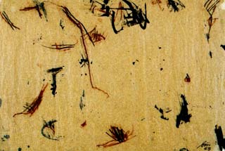 In questi lavori la figura umana, o una parte di questa, affiora, fuoriuscendo da un groviglio di segni che sembrano mutilare la figura; si ha in questo modo la percezione, che già connotava le prime opere informali, che questi tratti ricalchino la forma del taglio e della cicatrice.