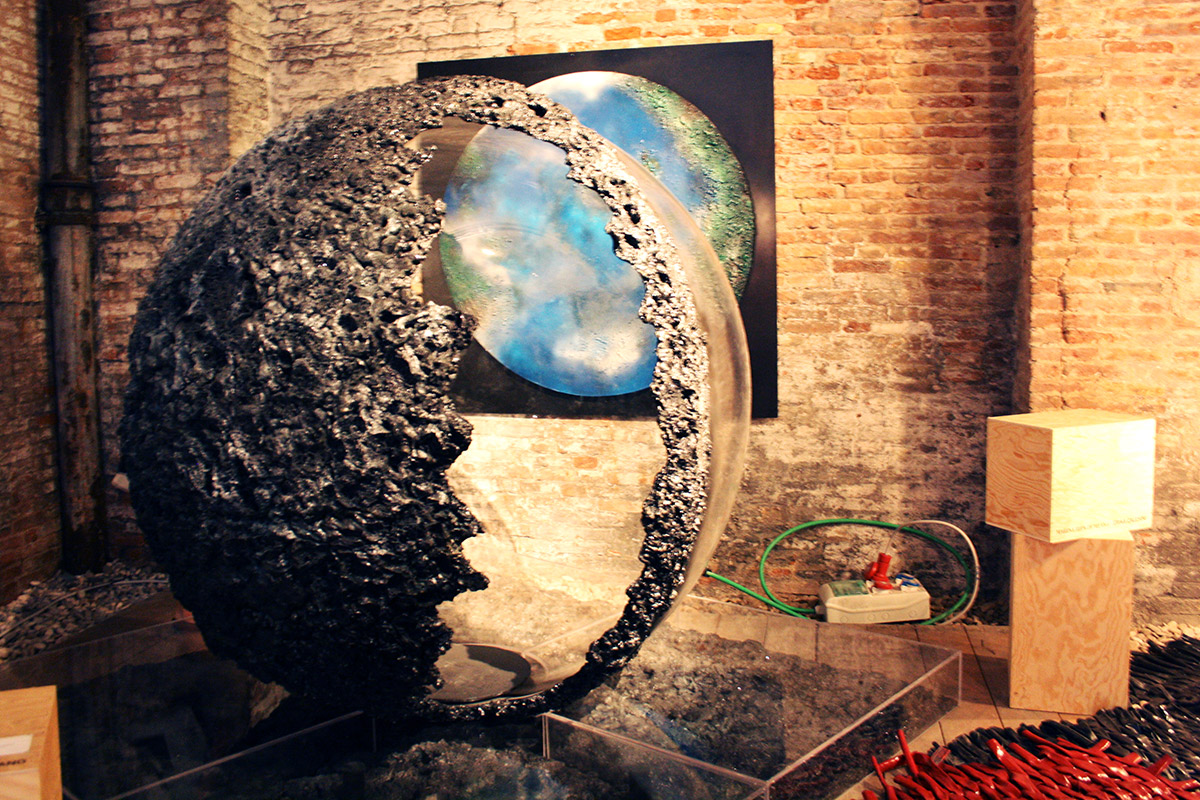 La caducità dell’esistenza è il pane della sensibilità artistica, così sono persino i nostri rifiuti a diventare denuncia, nel padiglione svizzero l’artista Hirschhorn ha allestito il suo Crystal of Resistance incollando cocci, cottonfioc, lattine usate e vecchi cellulari, così da sottolineare come il consumismo produca per lo più materiale di scarto, che non aiuta il nostro smarrimento da saturazione dei desideri. Mentre ho trovato ridicola la decontestualizzazione dei cestini dell’immondizia provenienti dalle strade del mondo portati da Klara Lidén, sono molto poetiche le foto dei tombini world wide nel padiglione indiano e l’azzardo della Serbia con Light and darkness of Symbols, la sconvolgente trovata di usare simboli intoccabili, come la svastica, in modo del tutto diverso dal comune per alterarne l’interpretazione diffusa.