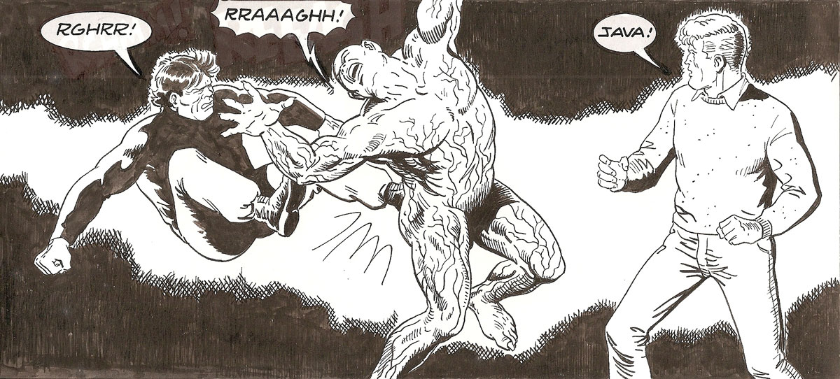 Infatti ci sono dei disegni che ho fatto dopo tre anni che lavoravo e, guardandoli adesso, mi dico: «Chi è questo? Ah, sono io». Le prime storie erano tutte western o al massimo dei gialli, ma erano molto brevi, dodici o tredici tavole, quindi non ti stancavi a farle, non ti annoiavi, cosa che purtroppo avviene con Martin Mystère, soprattutto da quando è diventato bimestrale: 154 pagine non sono poche! Che poi, molto spesso, queste 154 pagine potrebbero essere ridotte alla metà, perché l’autore, un po’ non sa cosa scrivere, un po’, condizione molto comune a quasi tutti gli autori della Bonelli, lavora contemporaneamente su quattro, cinque o sei storie, e quindi manda cinque tavole a un disegnatore, dieci al secondo e quindici al terzo, tanto che tu non sai mai come finirà la storia.