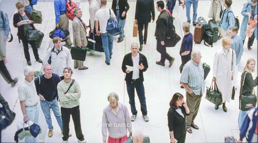 In The Pitch (1998), film forse più significativo della selezione presentata al BAL, Mark Lewis si filma in un luogo pubblico mentre fa (per l’appunto) un pitch. Telecamera rialzata, fissa sull’artista, ma non in primo piano. Il soggetto dell’opera si definisce mentre ascoltiamo il suo discorso: consiste in tutto ciò che circonda Lewis. Il brusio continuo della gente che passa. I movimenti scombinati che ricordano quelli di una stazione, di un aeroporto, dove alcuni procedono rapidi verso la loro destinazione mentre altri zigzagano a destra e sinistra in cerca di un’indicazione. Qualcuno si ferma e osserva la telecamera, sorride. “Voglio rendere omaggio ai figuranti – recita l’artista – ai personaggi sullo sfondo, voglio spingerli in avanti, dargli importanza. Vorrei fare un film di sole comparse… Amo il modo in cui camminano e fanno finta di parlare. Amo il modo in cui si nutrono di alimenti in plastica nelle scene girate nei ristoranti, come si inginocchiano per allacciarsi le scarpe; il modo in cui fumano un sigaro, il modo in cui si guardano. Tutto quello che fanno le comparse mi affascina”.